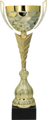 Această cupă aurie, realizată din metal de calitate, este ideală pentru competiții sportive, festivități și ceremonii de premiere.