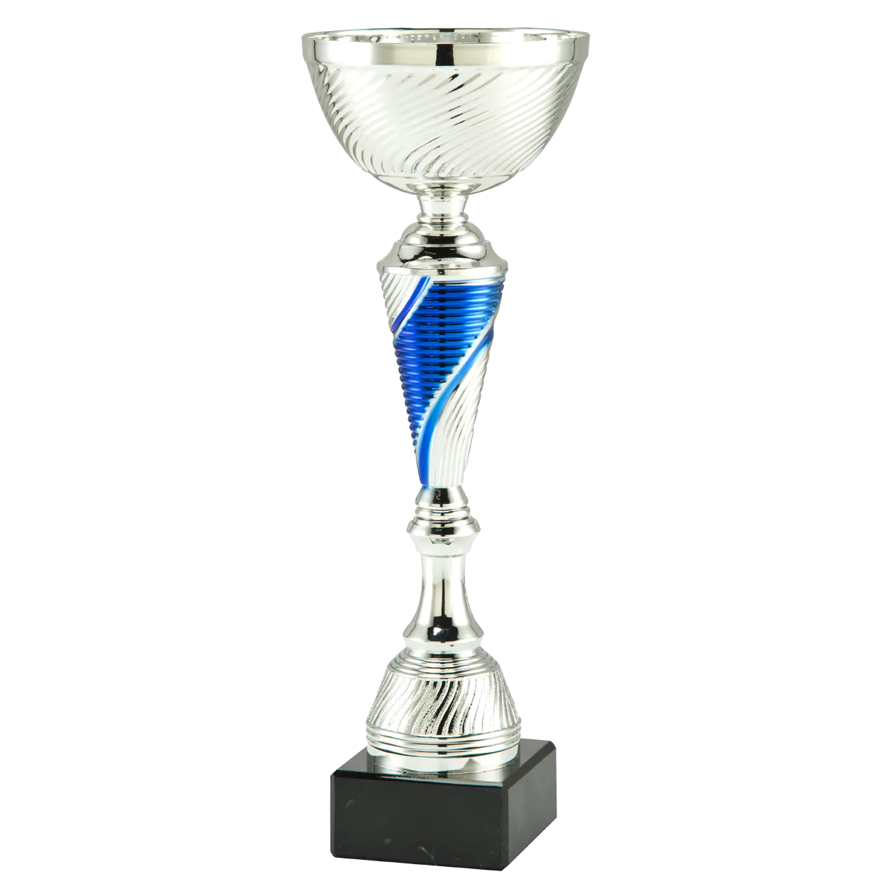 Cupă elegantă în combinație de argintiu și albastru, ideală pentru competiții sportive, turnee, evenimente și ceremonii