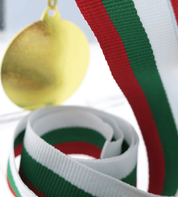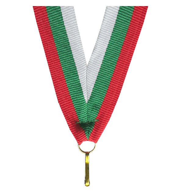Șnur pentru medalie, realizat într-o combinație elegantă de culori alb, verde și roșu, potrivit pentru competiții sportive, festivități și ceremonii de premiere.