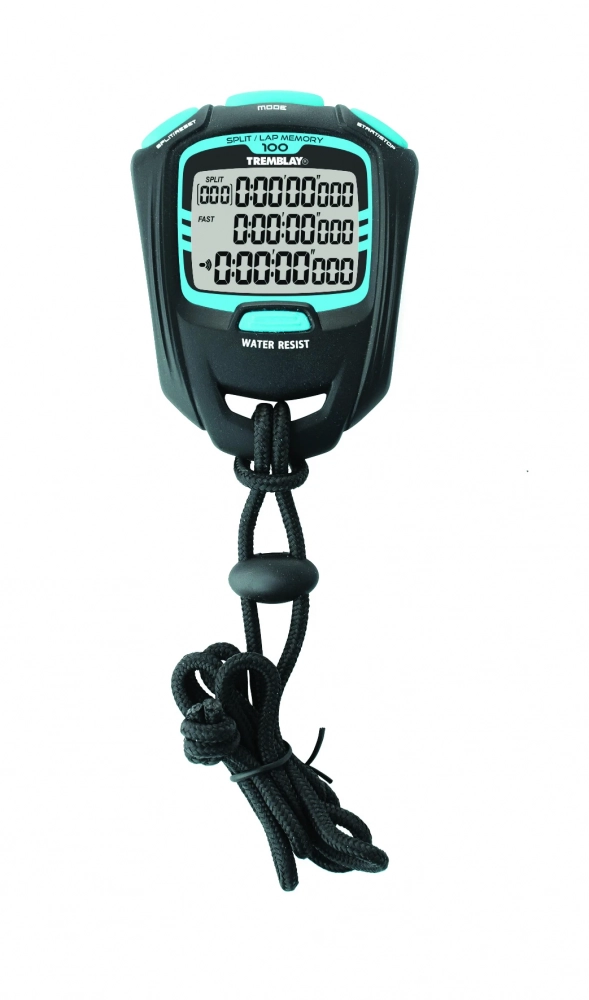 Detalii cronometru: precizie 1/100, timp simplu, timp de alergare total,