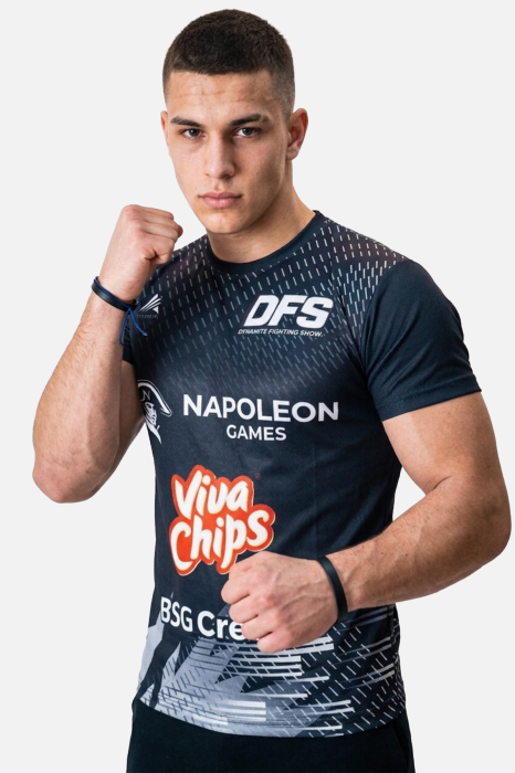 Realizat din 100% poliester, acesta este ușor, rezistent și plăcut la purtare, fiind potrivit pentru mișcare intensă și utilizare frecventă. Materialul sublimat oferă un aspect sportiv modern și contribuie la păstrarea culorilor și imprimeului în timp.